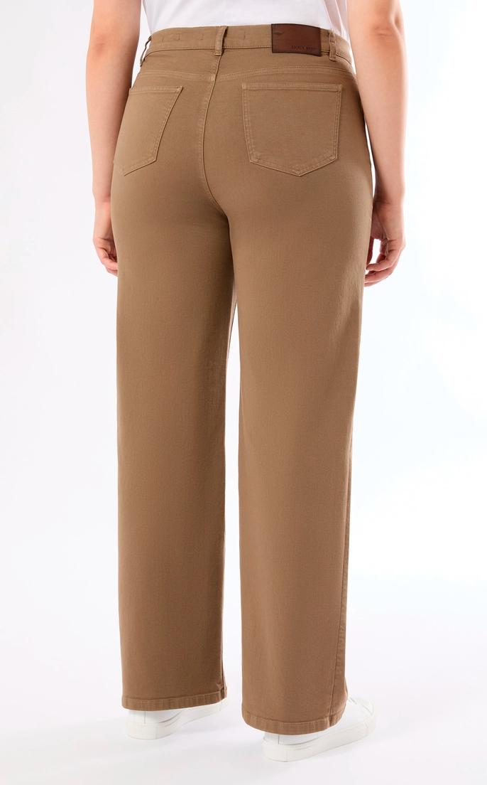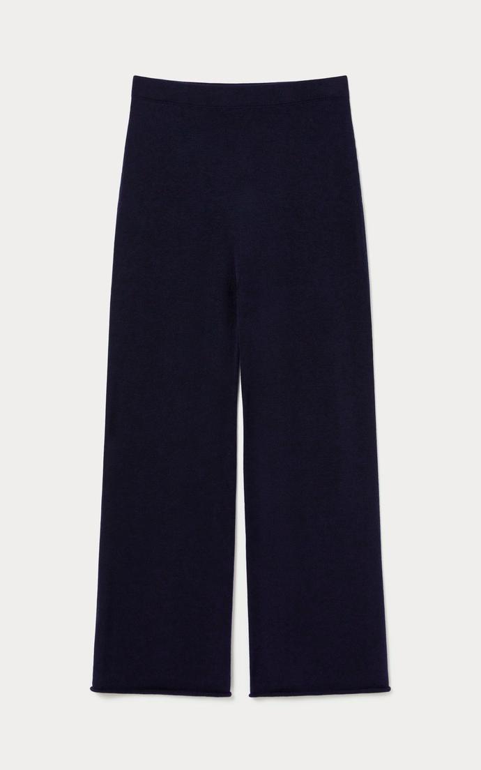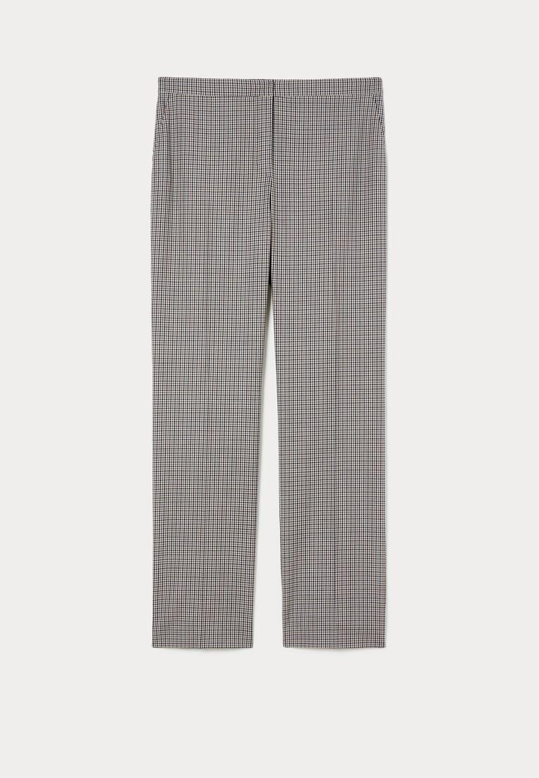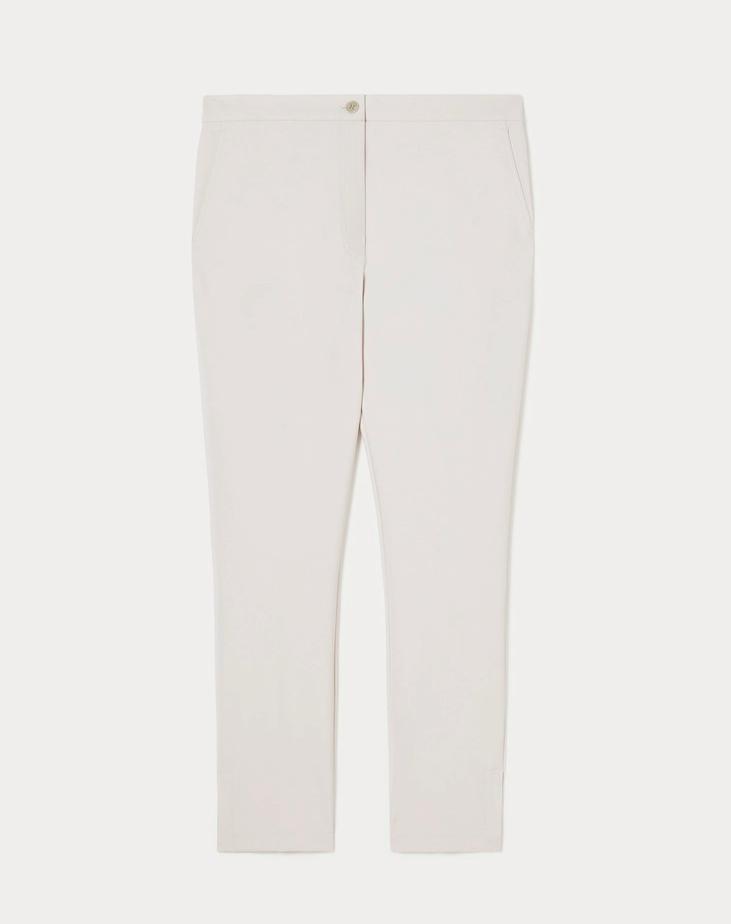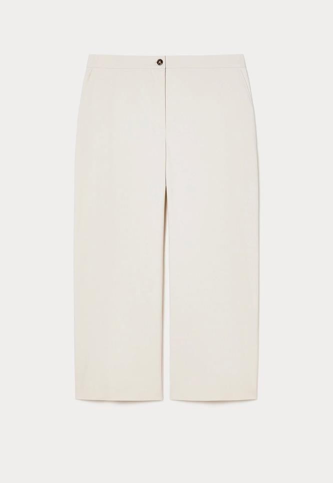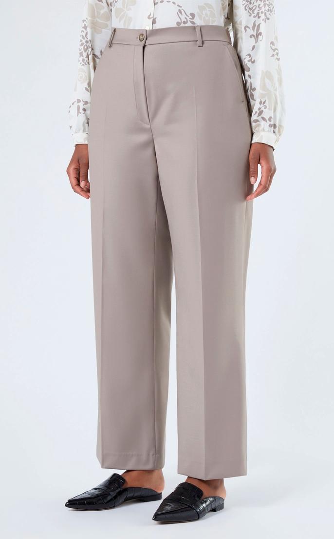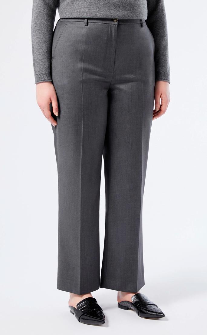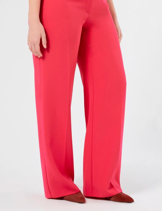 99. QUOTA. Pantaloni in saglia di viscosa monoelastica in trama. Linea wide leg attuale. / Single-stretch viscose twill trousers. Current wide-leg fit.