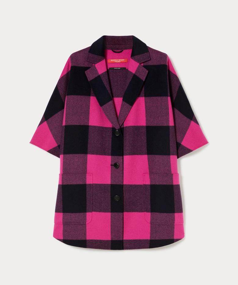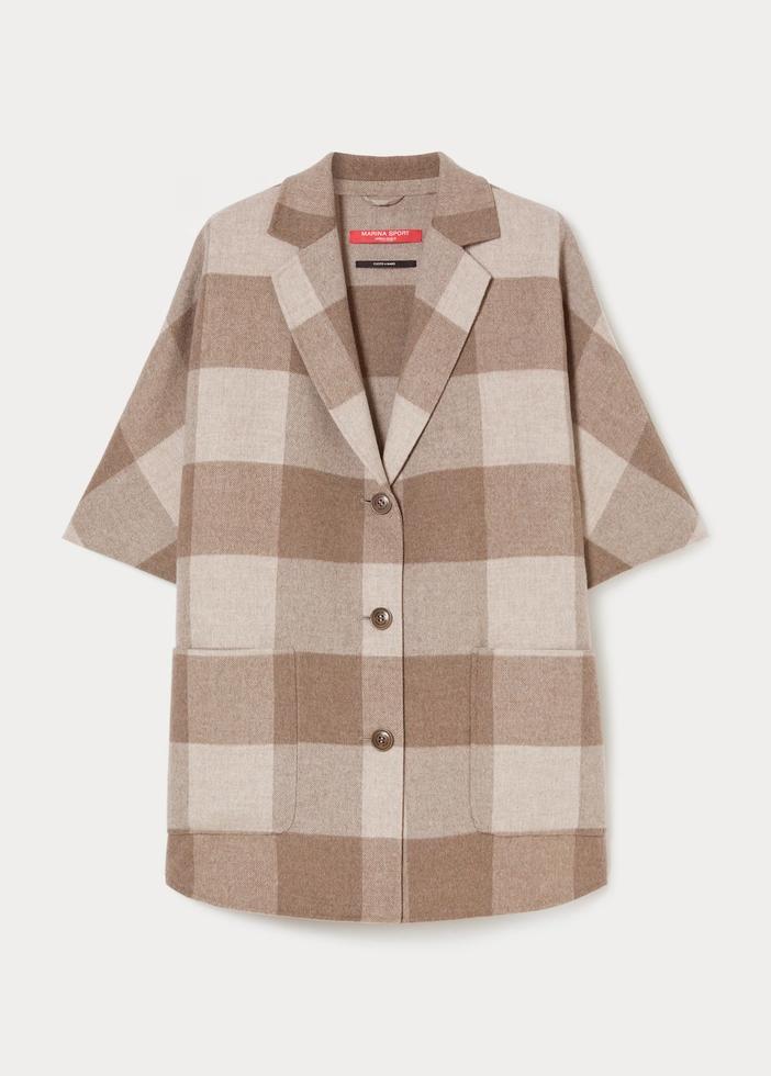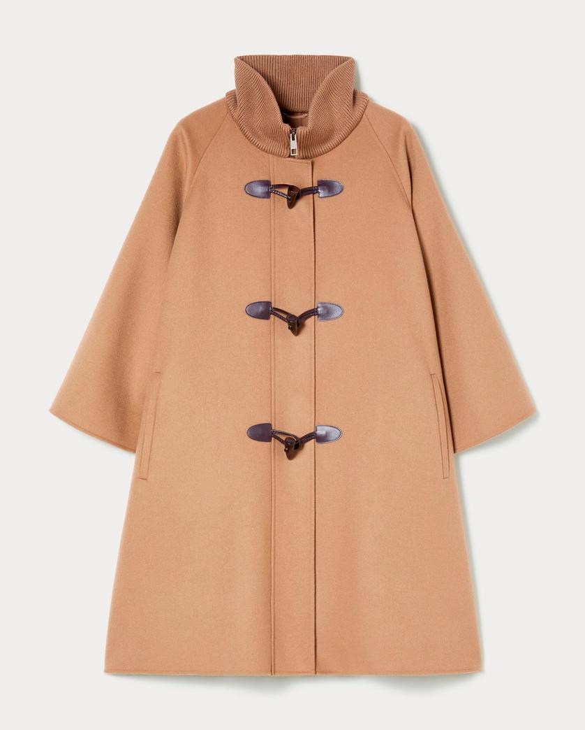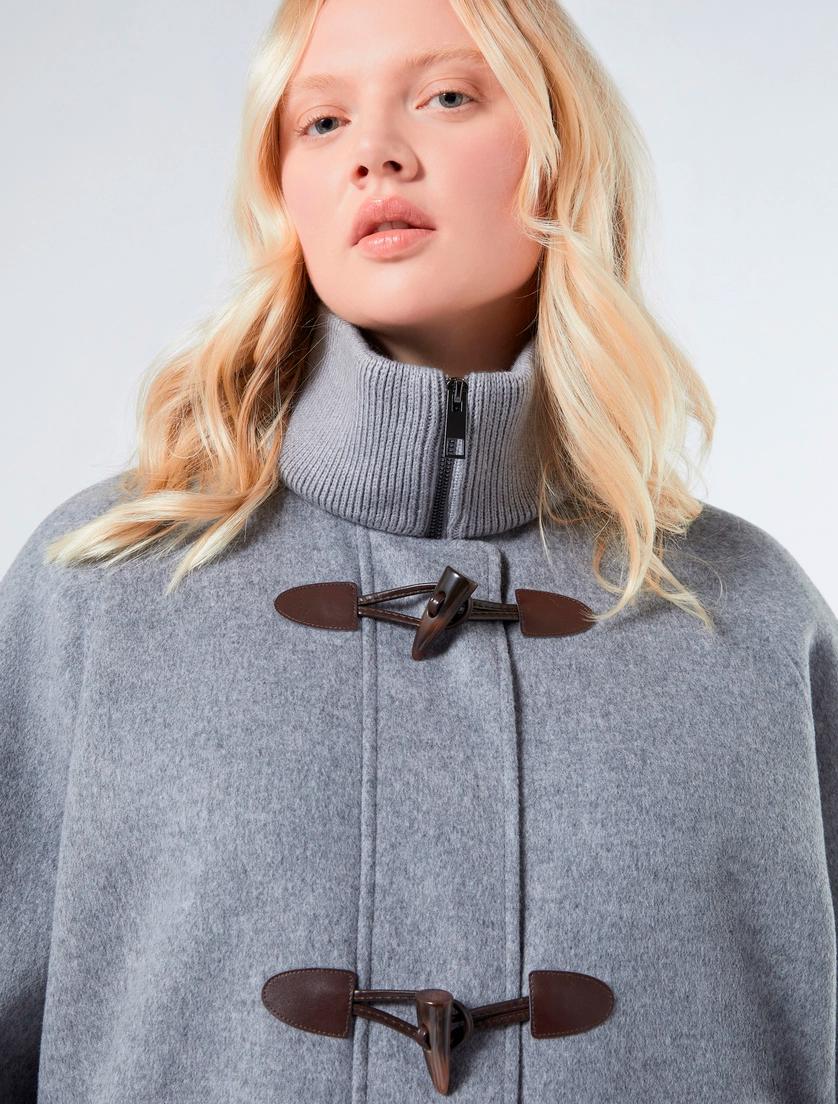 133. EFESO. Cappa in double di misto lana con collo in maglia. / Double-faced wool blend cape with knitted collar.