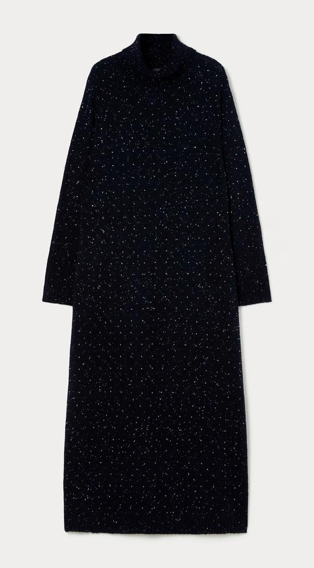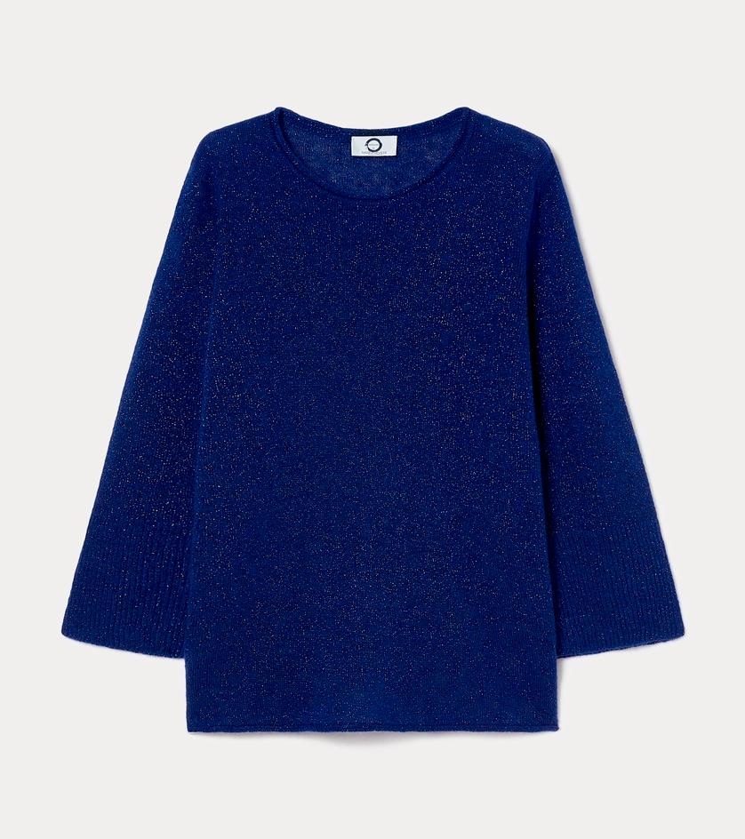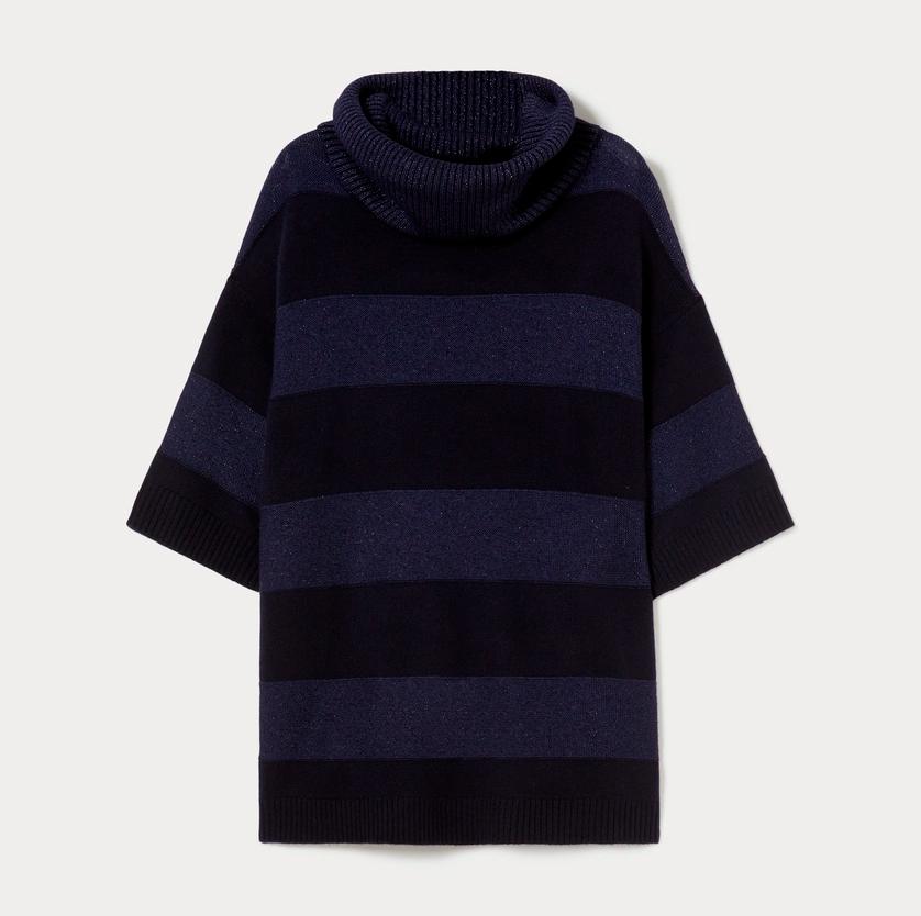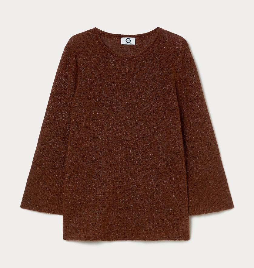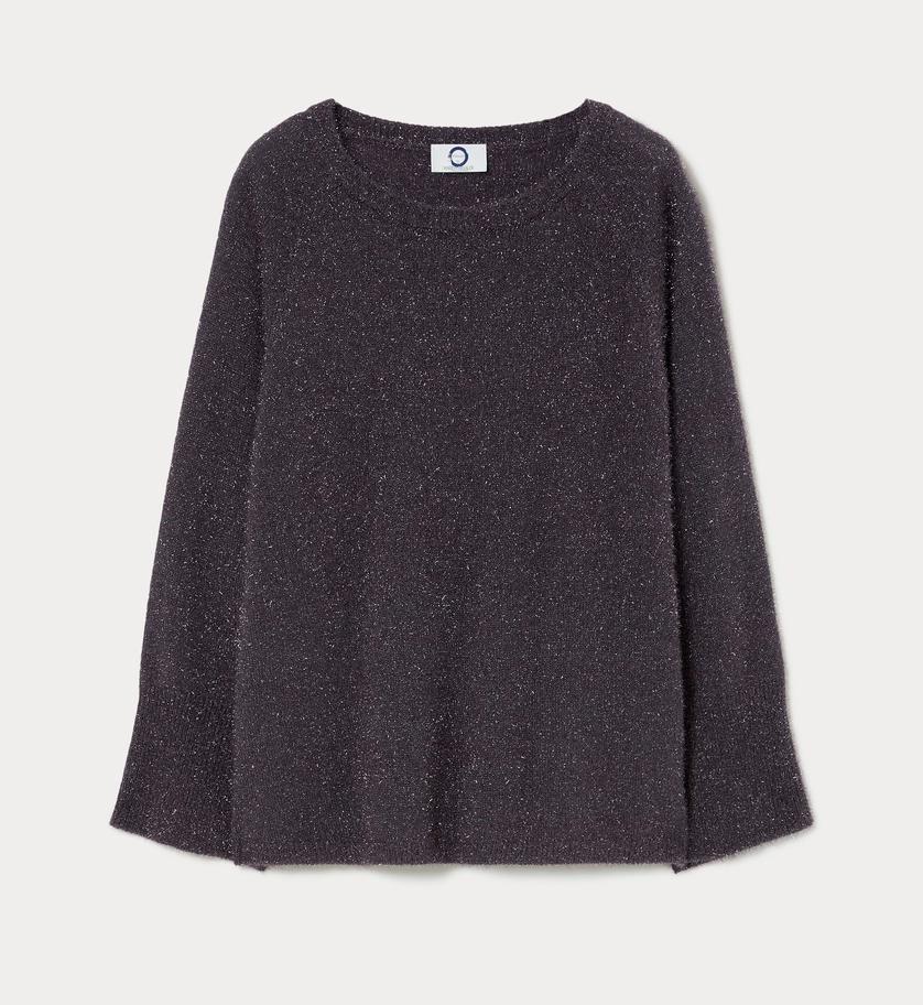 The knit top and skirt in metallic wool envelop you in a shimmering softness. The oversized line grants you freedom and style, while the brilliant yarn discreetly illuminates all your looks.irresistible.