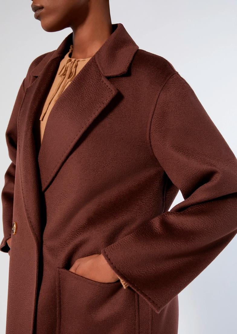 136. OCHE. Cappotto a doppio petto in double di pura lana zibellinato. / Pure zibeline wool double-sided fabric coat finished with a hand-sewn tailored pick stitch.