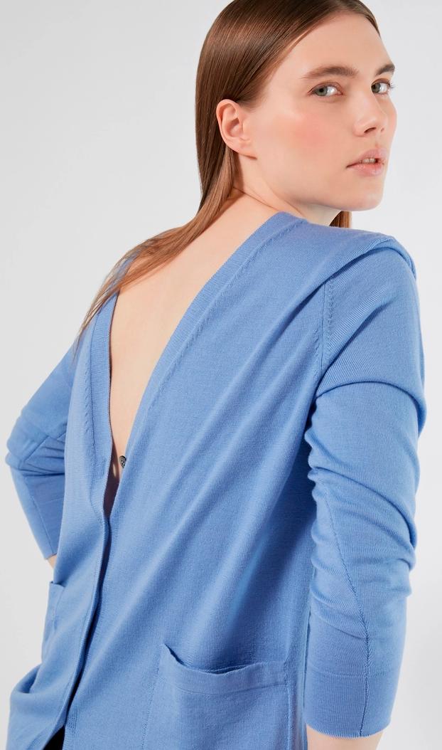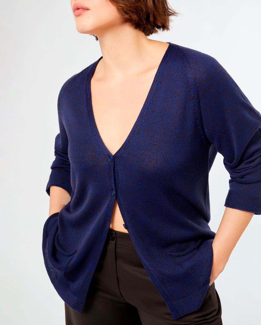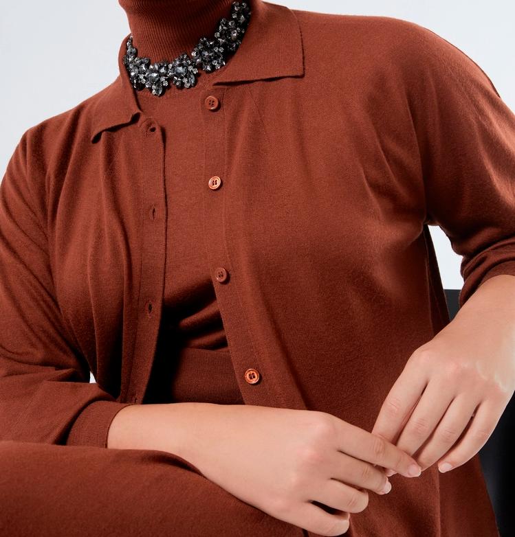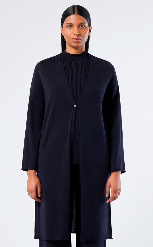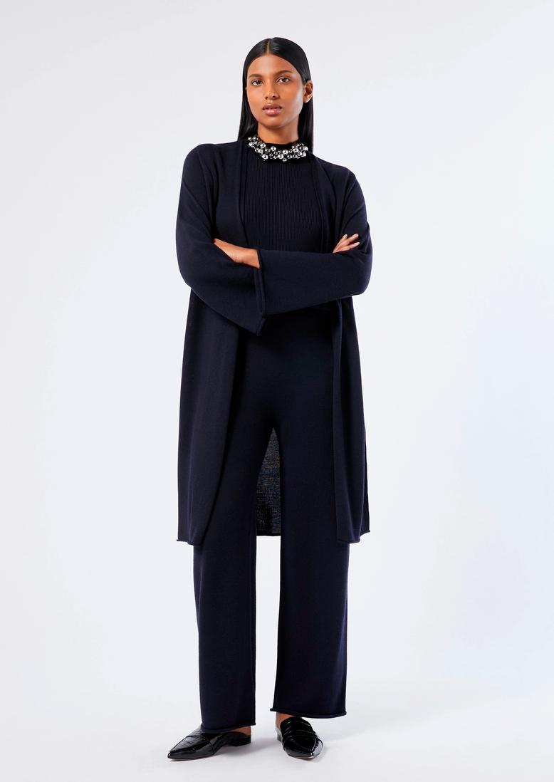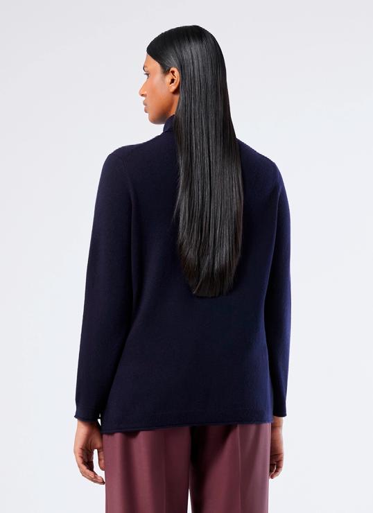 27. ALFA / 28. MAIS Cardigan and turtleneck in pure extra-fine Merino wool. The flared line and luxurious yarn create a chic and versatile passe-partout. Wear them together or separately for effortless, impeccable elegance.