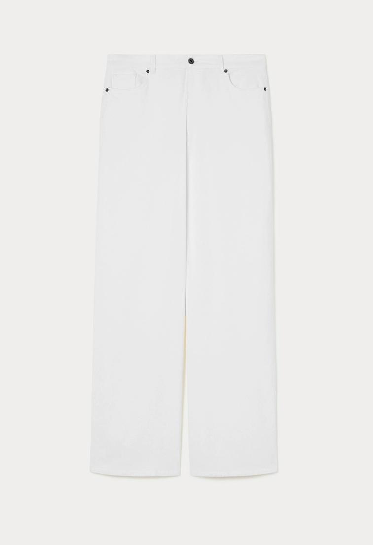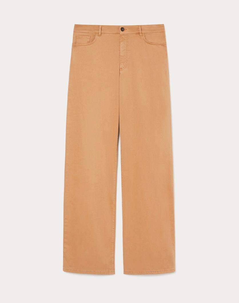100. MANAGER. Pantaloni wide leg in bull di cotone monoelastico in trama tinto in capo. / Garment-dyed, single-stretch cotton bull wide-leg trousers.