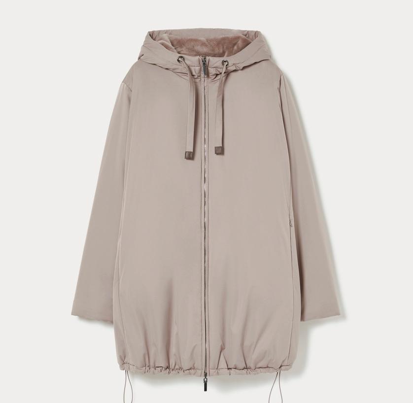 132. TALEA. Un design a vestaglia elegante e liscio in raso con trattamento antigoccia. Il comfort termico è garantito dall'imbottitura interna Luxepad Ultra fine Insulating Technology, progettata per ottimizzare e trattenere il calore corporeo, assicurando prestazioni termiche elevate anche in condizioni di freddo intenso.