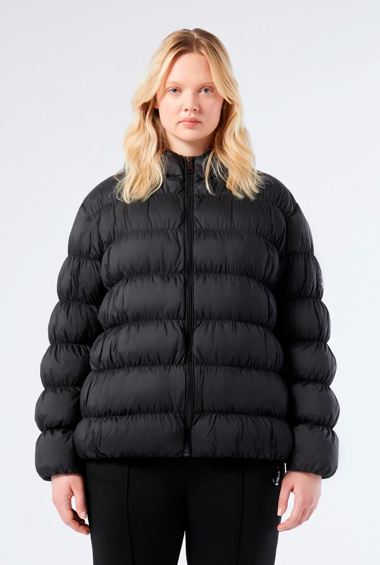 TREMITI. L'imbottito corto in tela di nylon ti avvolge in una linea raffinata, catturando la luce con il suo effetto cangiante antigoccia. / The short nylon canvas puffer coat wraps you in a sleek line, catching the light with its shimmering, water-resistant finish.