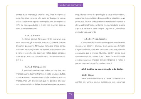 a nota 3 para as marcas Simple Organic e Relax e para a marca Quintal foi dada a nota 2. 4.3.4.1.3 Transparente