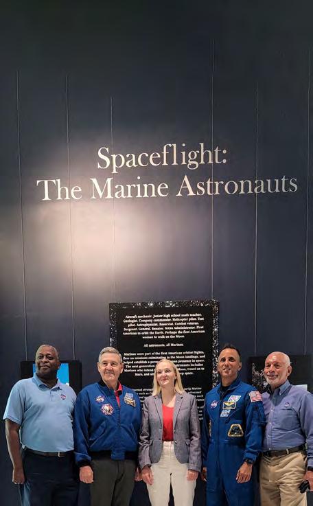 The exhibition Spaceflight: The Marine Astronauts was installed in June with hanging graphics and three exhibit cases with artifacts from the NMMC’s collection and artifacts on loan from NASA and the Smithsonian.