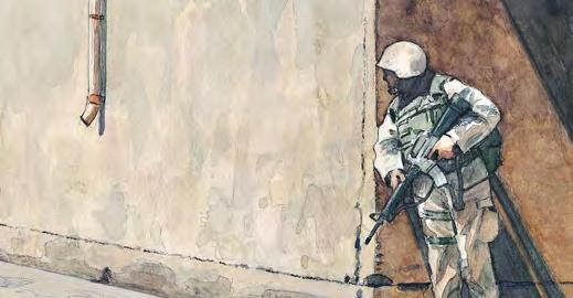 The NMMC Artist in Residence’s primary responsibilities are to create combat art and illustrations for the Marine Corps combat art collection and to manage and promote the Marine Corps Combat Art Program (MCCAP). The Artist worked on the Historical Illustrations Project, which will be completed in time for the 250th birthday of the Marine Corps in November 2025. The Historical Illustrations Project consists of 25 to 30, large-scale paintings that feature key moments in Marine Corps history, from the Vietnam era to the present. He recommended commissions for other artists to produce combat art and illustrations to accent the Historical Illustrations Project: Marc Poole, president of the American Society of Aviation Artists, will produce a two-dimensional work featuring Marine Women in aviation in World War II, and Joe Winslow, a Marine historian, will create a bas relief sculpture depicting Marines in action in Operation Phantom Fury.