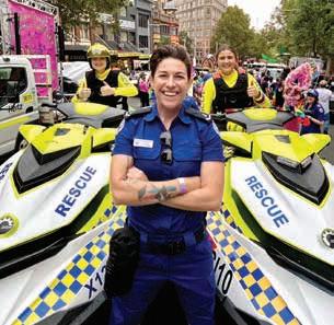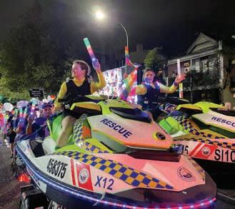 Marine Rescue NSW logo, two rescue water craft (RWC) were the centrepiece of this year’s Mardi Gras Parade float.