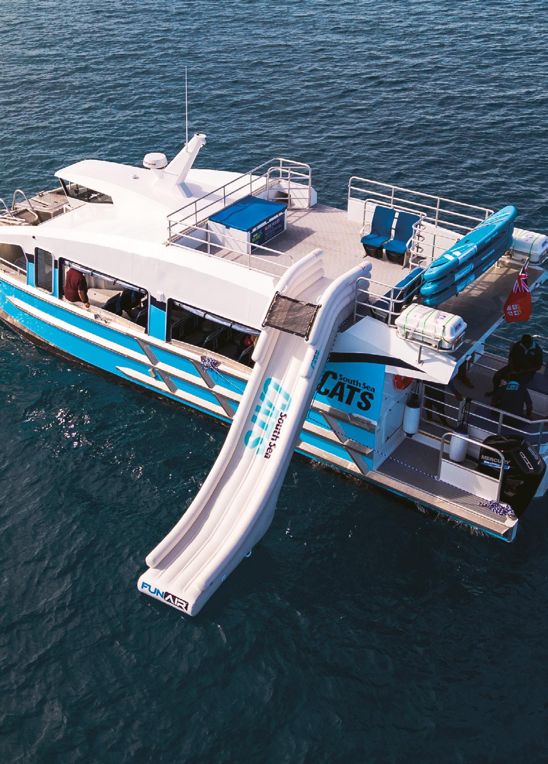 South Sea Cats’ two 14.8m high-speed catamarans, which launched in mid 2025, are fast, stable, and uniquely designed for Fiji’s waters. Whether you’re heading to a resort or joining in our Ride & Slide Half-Day Snorkelling Adventure, these custom-built vessels offer easy boarding, spacious luggage storage, and an inflatable slide from the sun deck—making every splash unforgettable!