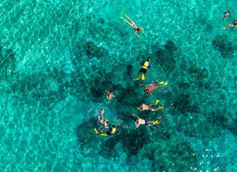 Includes: exclusive vessel charter use of onboard snorkelling gear, light lunch, soft drinks, bottled water, house wine, and local beer