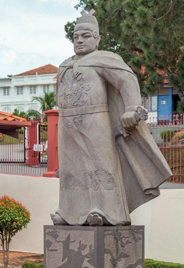remarkable figure in maritime history. His skills that led to him being chosen to command missions conducted on a grand scale were supplemented by his lesser known skills such as writing. An extract from his description of travelling the ocean goes “We have traversed more than 100,000 li of immense water spaces and have beheld in the ocean huge waves like mountains rising in the sky, and we have set eyes on barbarian regions far away hidden in a blue transparency of light vapours, while our sails loftily unfurled like clouds day and night continued their course…”