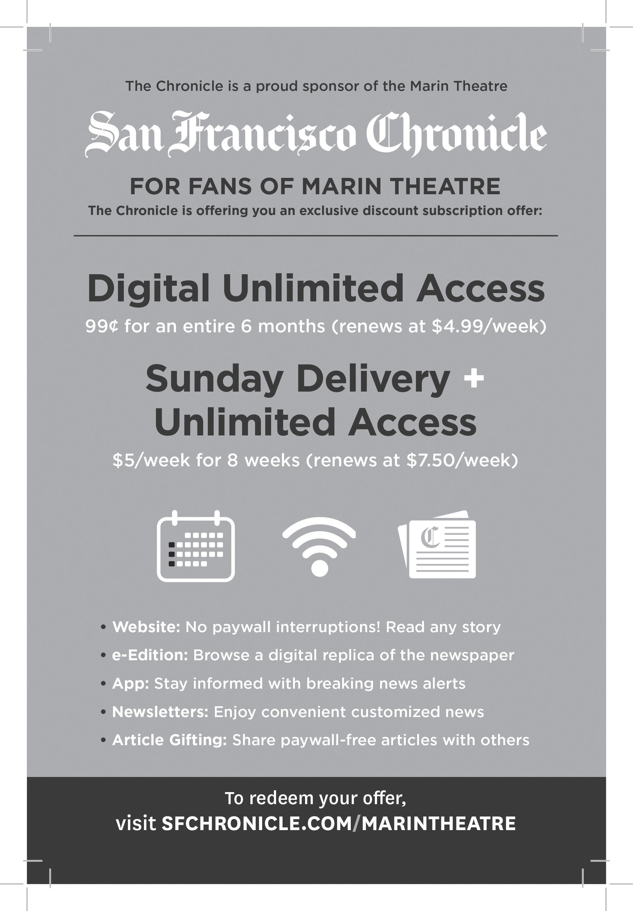 Marin Theatre acknowledges the generous support (Jan 2024 - Jan 2025) of the following individuals, foundations and corporations whose contributions make our extraordinary theatre productions and education programs possible in the past year. To join our family of contributors, receive sponsorship information or if you have questions about your gift, please contact development@marintheatre.org