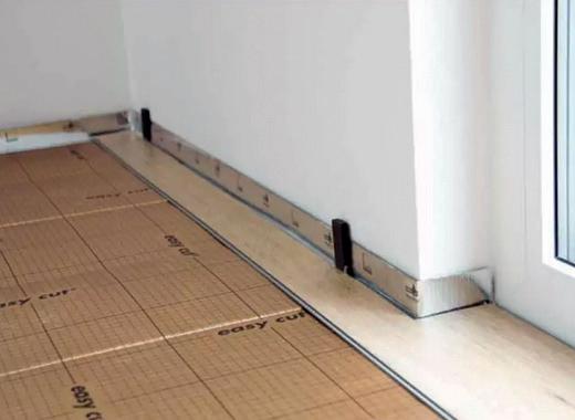 Rund um den Raum einen Spalt (ca. 10 mm) lassen, um Materialausdehnung zu ermöglichen.