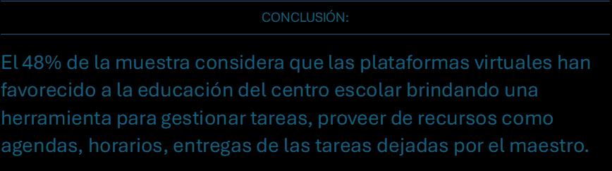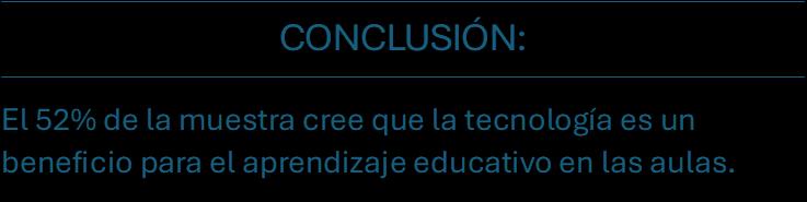 el 40% considera que todo depende del uso y la moderación del docente en clase ya que debe despertar el criterio de cada estudiante y no depender de la tecnología.