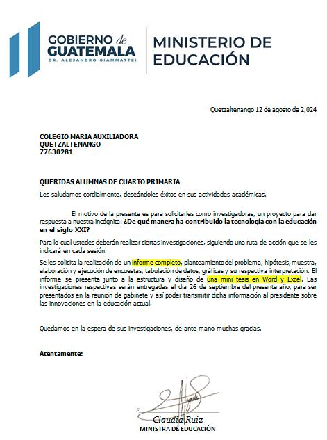 Nosotras como investigadoras del ministerio de educación daremos respuesta/problema: