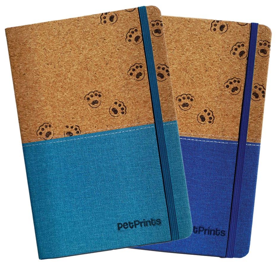 PET PRINTS Pet Prints A5 Notepad Individually hand stamped. Half cork & half Turquoise or Royal Blue Fabrication. www.petprints.co.za R150