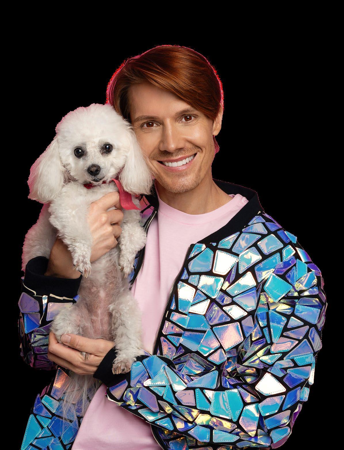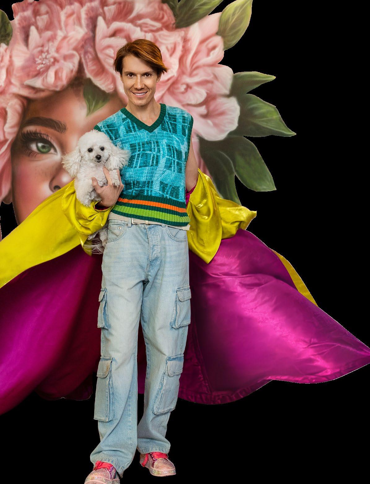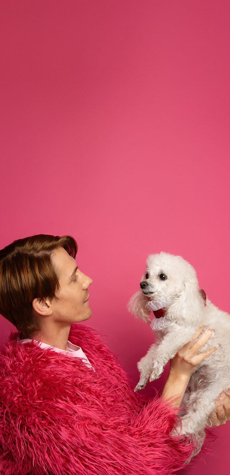 Our cover star, makeup artist Ryno Mulder, knows exactly what that means. With his rescued poodle, Gigi, at his side, Ryno proves that glamour and compassion make the perfect power couple. Their story is one of transformation, of a little dog who went from barking in a shelter to strutting red carpets in her “Barkin’ Bag.” Together, they embody what it truly means to rule with heart.