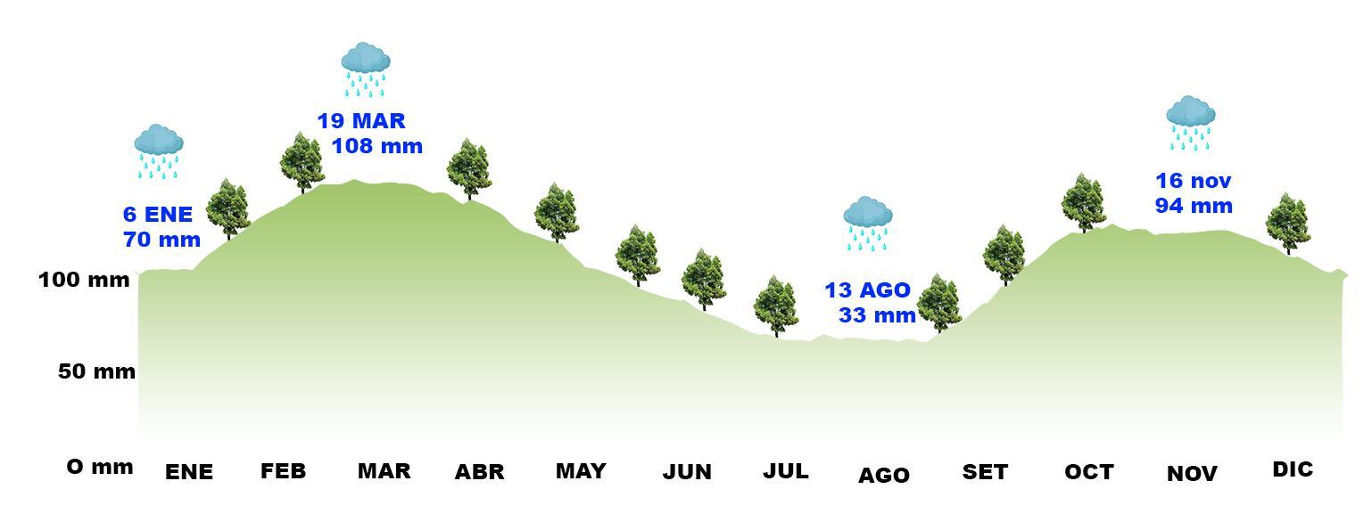EL MES CON MÁS LLUVIAS ES MARZO PROMEDIO 108 mm