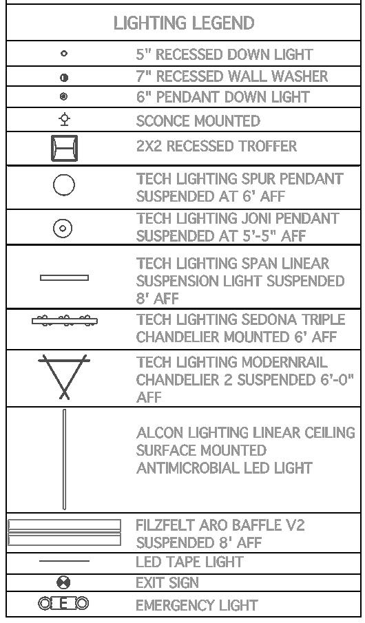 • Acoustical considerations such as felt applications, green walls and acoustical ceiling details.