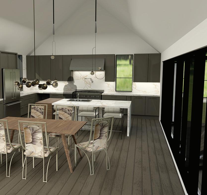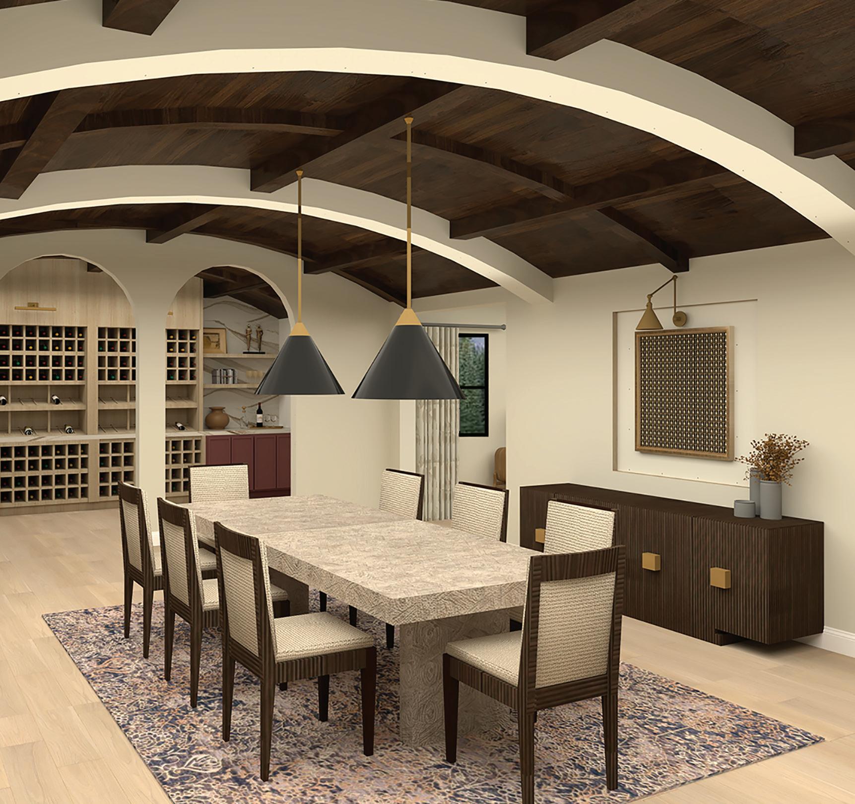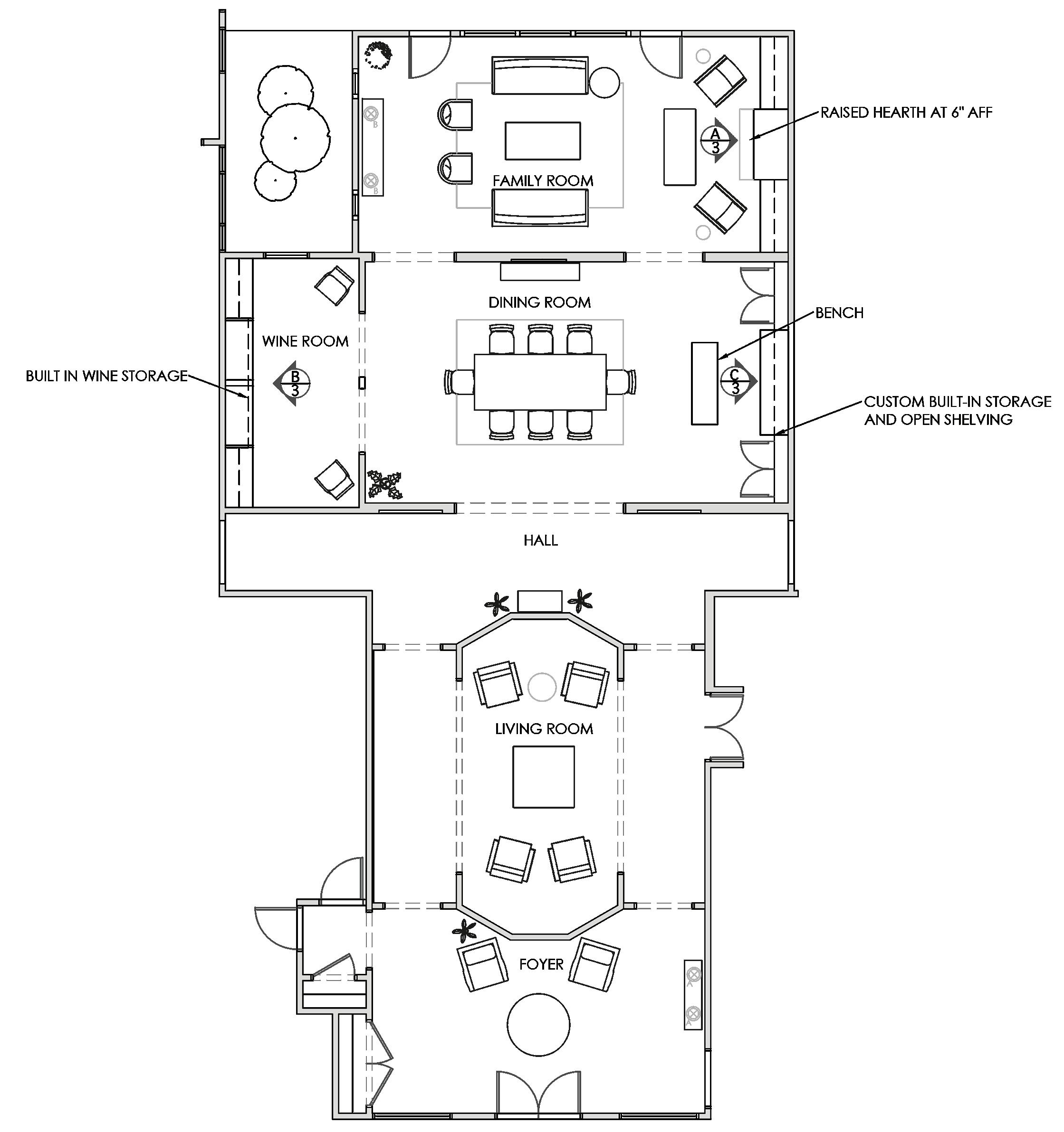 • Adding custom features such as built-ins, ceiling details and height changes as well as adding interesting dividing walls in the space.