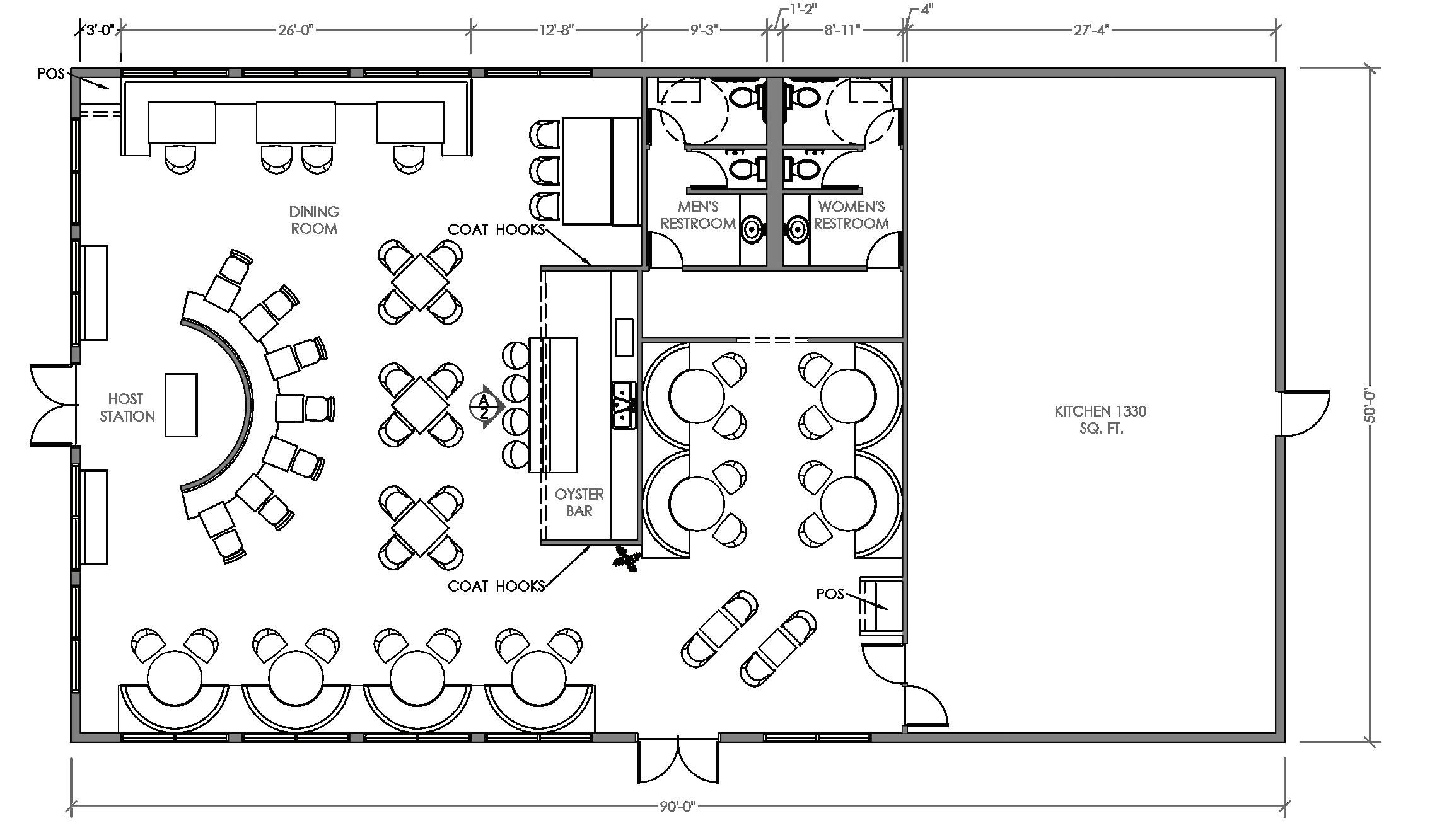 • Considering ADA codes and regulations throughout the space, culminating in compliant restrooms, great circulation throughout the dining and bar area, as well as accessible seating options.