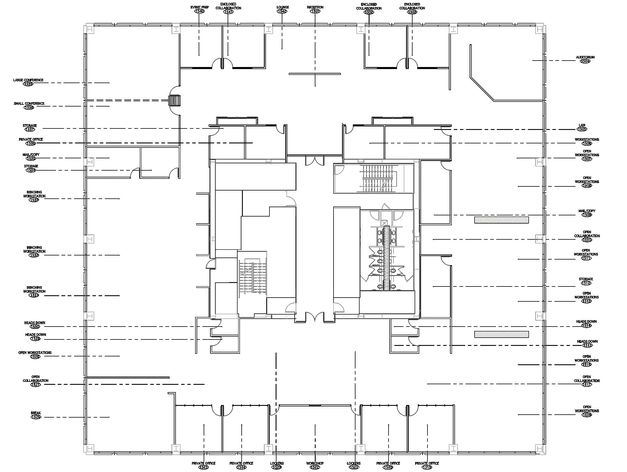 • ADA considerations such as roll up at reception, space in the auditorium for inclusive seating options as well as ample circulation throughout the entire 15th floor.