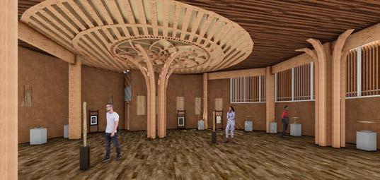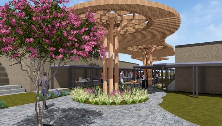 The idea for the space is to draw in the community to experience the culture at AIT-SCM. The design concept, A Dance for the Community brings in the movement and flow of American Indian dances. The goal is to break down barriers and build good will among the community. The building’s design flows as if it were dancing itself. The outdoor performance space will prioritize a natural, open area with elements that respect American Indian traditions, allowing for ceremonies, dance, drumming, storytelling, and cultural displays, while incorporating features like a central gathering circle, natural materials, and designated areas for specific activities, while also considering the local tribal community’s specific needs and