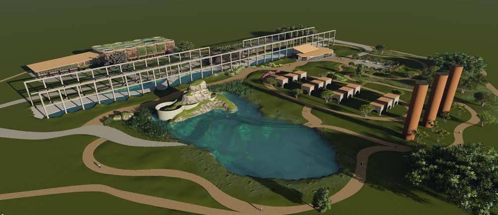 Investors are looking to develope a wellness facility at the location of the Longhorn Quarry. Their plans are to resuse most of the structures on the site. Sustainablility and net zero building are priority for the investors. They also are looking to become a LEED certified facility. The idea for the design will establish a fluid order defined by its structure which morphs and expands to define the generous landscape, and open views from the building. Other sustainable options include mixed use of the property such as community gardens, and organic architecture (the architecture evolves according to the need). There will be paths leading to different areas of the site, but all connect together leading back to the main wellness center.