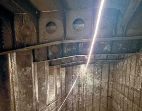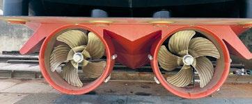 Extra drijfvermogen Omdat de massa van het schip is toegenomen, is er meer drijfvermogen aangebracht. Het schip bestond altijd uit twee rompen met daarop een dek dat het voorste deel van de rompen met elkaar verbond. De ruimte hieronder is nu als