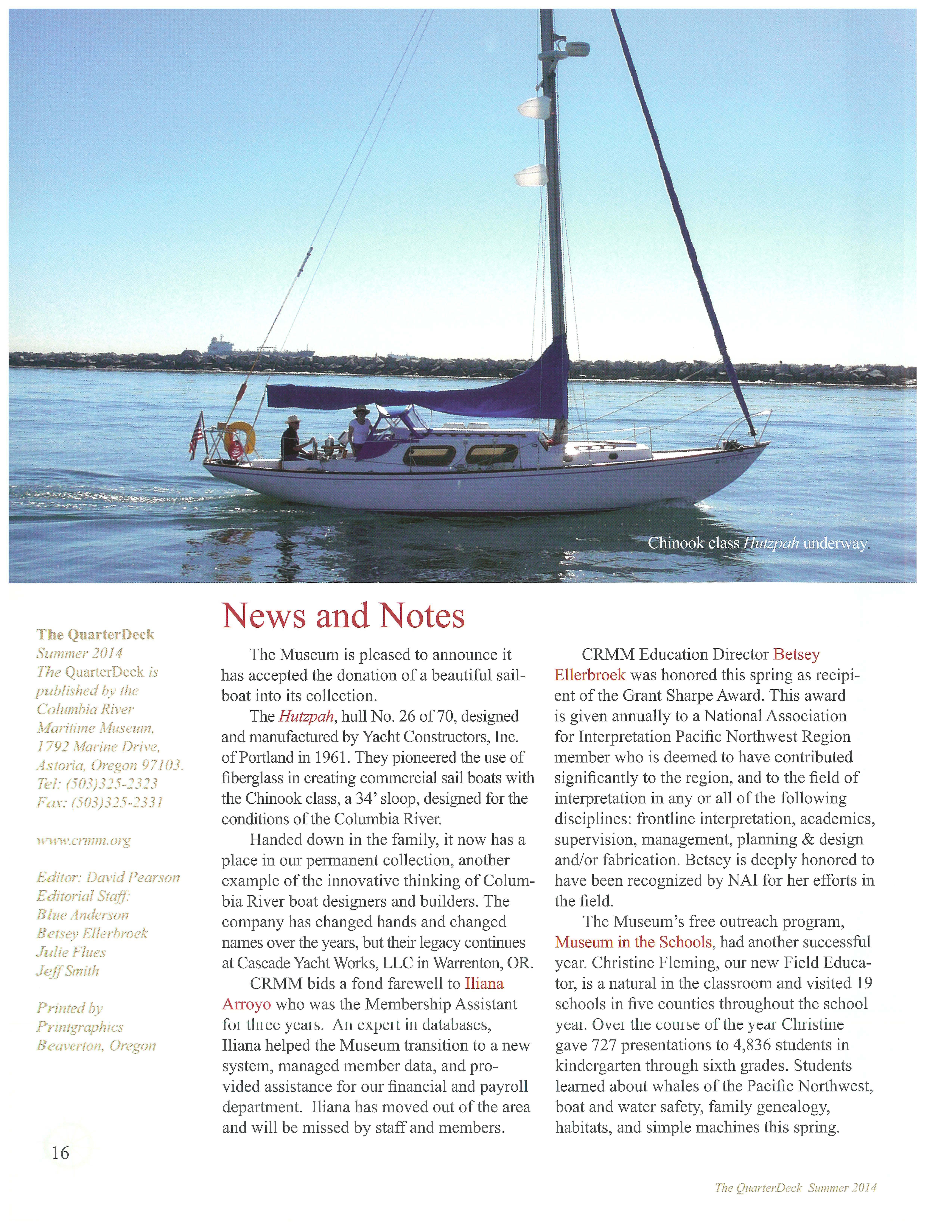 All in all, there is much to celebrate: the wonderful new name Astoria; the maritime significance of this line of pilot boats which has led to significant safety improvements throughout the world; and most importantly for the Columbia River Bar - the latest manifestation of cutting edge technology designed to improve safety and navigation across the world's most dangerous entrance to a major commercial waterway.