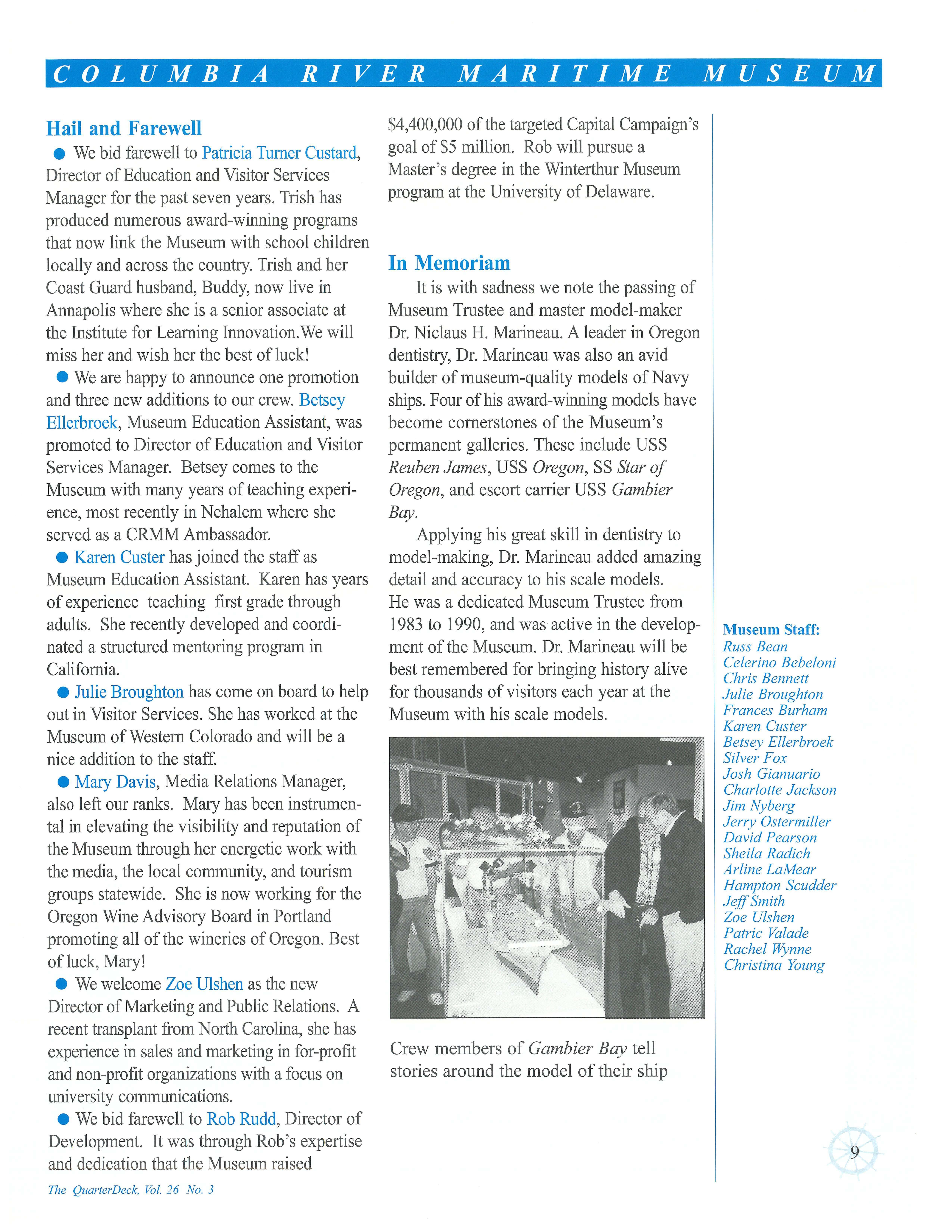 A review and newsletter ji·om the Columbia River Maritime Museum at 1792 Marine Drive in Astoria, Oregon