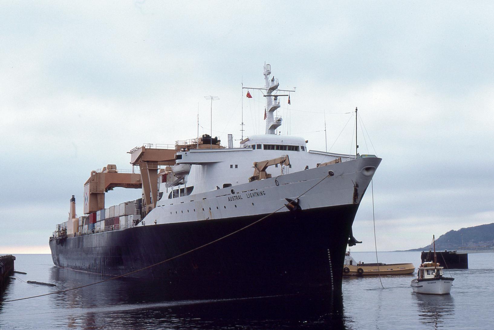Austral Lightning berths at Burnie, 1 October 1978. Photo: Rex Cox