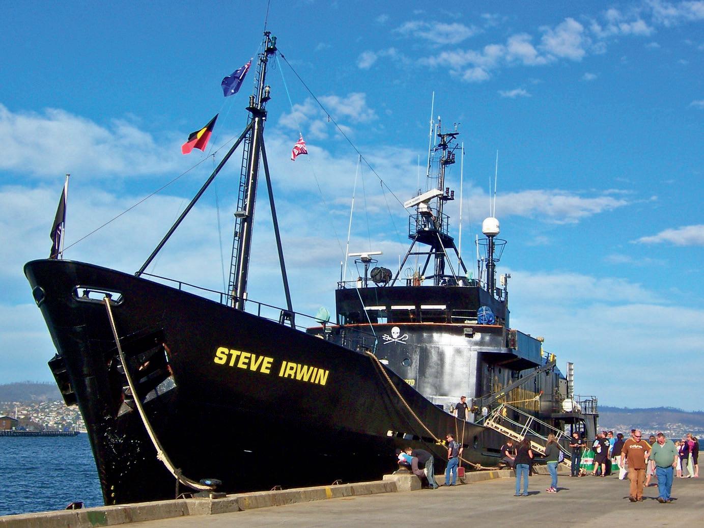 MY Steve Irwin Purchased in 2007 it was named Robert Hunter after the Canadian co-founder of Sea Shepherd, then renamed for the Australian conservationist It had been built for the Scottish Fisheries Protection Agency as the 59m Westra (885t/1975). A three week stopover on Launceston’s shiplift in 2014 repaired ice damage to the hull and fitted a new propellor to the 49-year-old flagship, while Launcestonians welcomed its crew with open arms Used for 10 seasons of anti-whaling campaigns, Steve Irwin was retired in 2018 and is now a museum in Newcastle, NSW