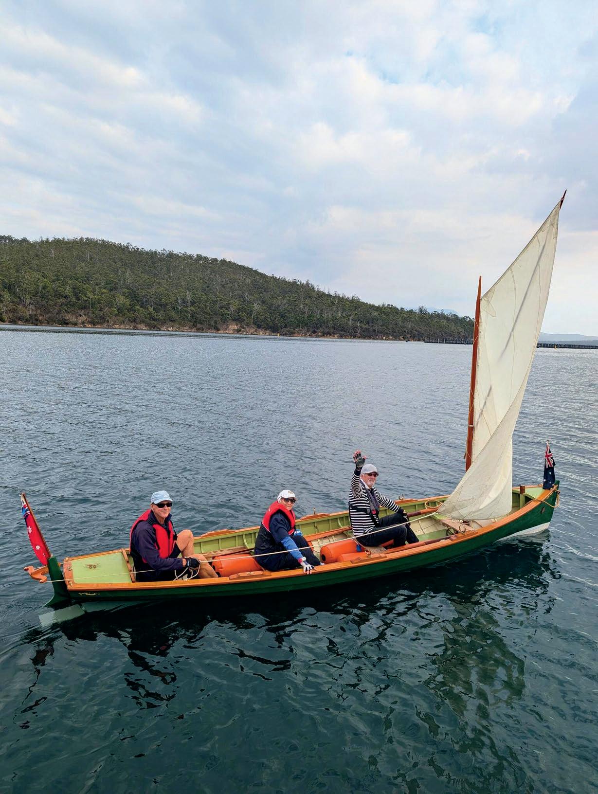The following month, the Museum was heavily involved in the biennial Australian Wooden Boat Festival As well as exhibiting several small craft, the Museum was actively engaged on the water, with both Westward and Ramping Lion taking part in the festival’s sail past Ramping Lion is a Huon pine pulling boat built by leading Tasmanian boat builder Max Creese in 1981 Originally part of the Australian National Maritime Museum’s collection, Ramping Lion was transferred to the Museum relatively recently. Thanks to the efforts of our volunteers, Ramping Lion accompanied Westward from Kettering to Sullivans Cove in time for the festival’s opening ‘Parade of Sail’