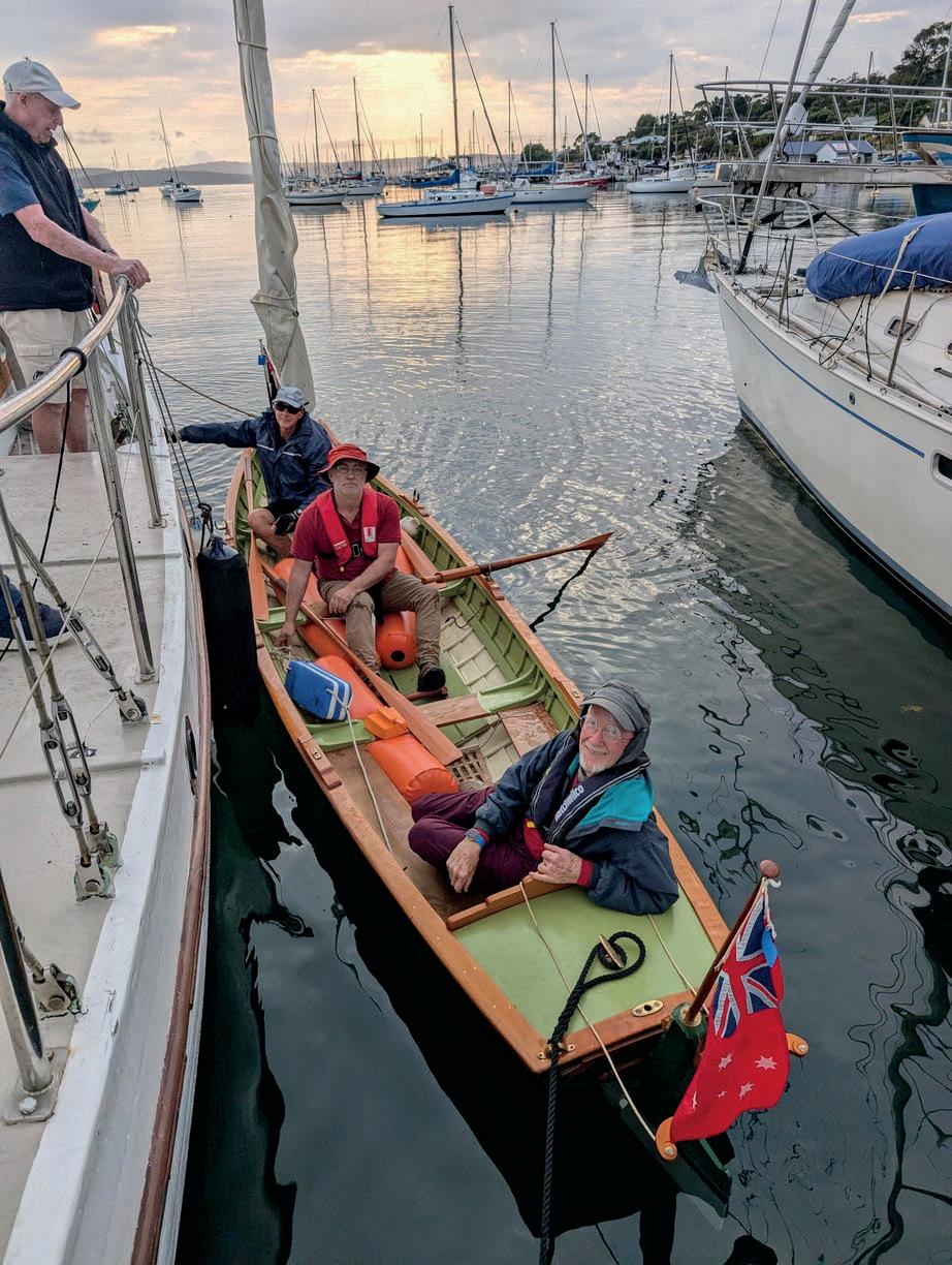 All the way to Tinderbox Point with a few crew changes, we averaged a steady three and a half knots using the little spirit rig Mindful of the need to meet the midday rendezvous for the sail past and an uncomfortable southerly building, Ramping Lion was towed by Westward to Nutgrove Beach, where the crew was again put aboard for the sail past and an uncomfortable but entirely successful completion of the journey
