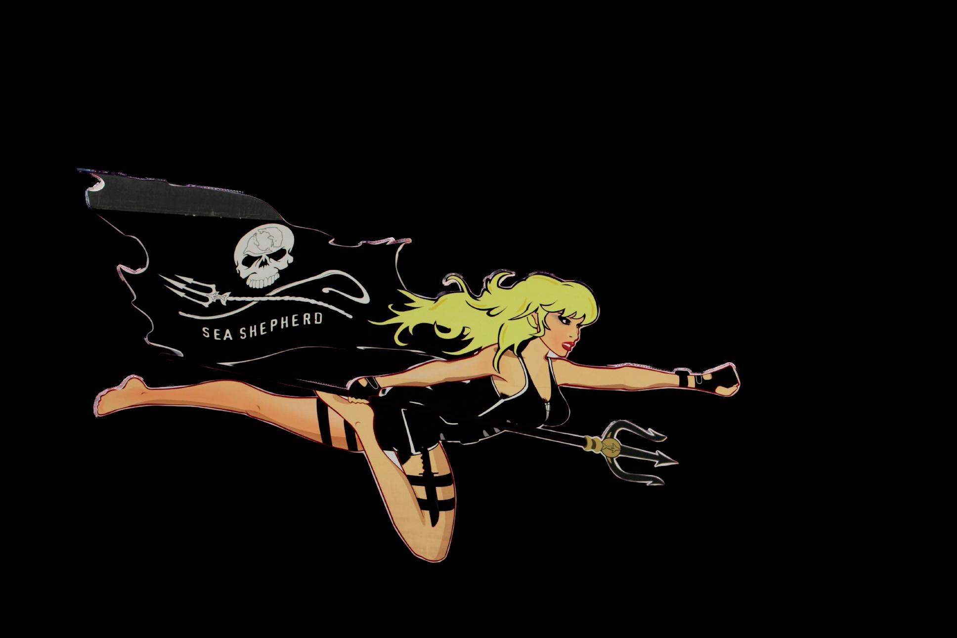 Founded as a marine conservation activist organisation, Sea Shepherd’s vessels disrupted illegal fishing, whaling, and sealing. The SSCS logo resembles the pirate’s infamous skull and crossbones – but actually is a dolphin and whale set in the “skull” and the cross “bones” are a shepherd's crook and Neptune's fork It developed strong Tasmanian links with resolute local supporters
