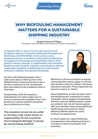 The magazine also covers some very informative articles on carbonization and biofouling. In addition, we have included two poems showcasing viewpoints from the poets' imaginations as well as the amazing winning images from the Photo competition that encapsulate the essence of women in leadership roles at sea