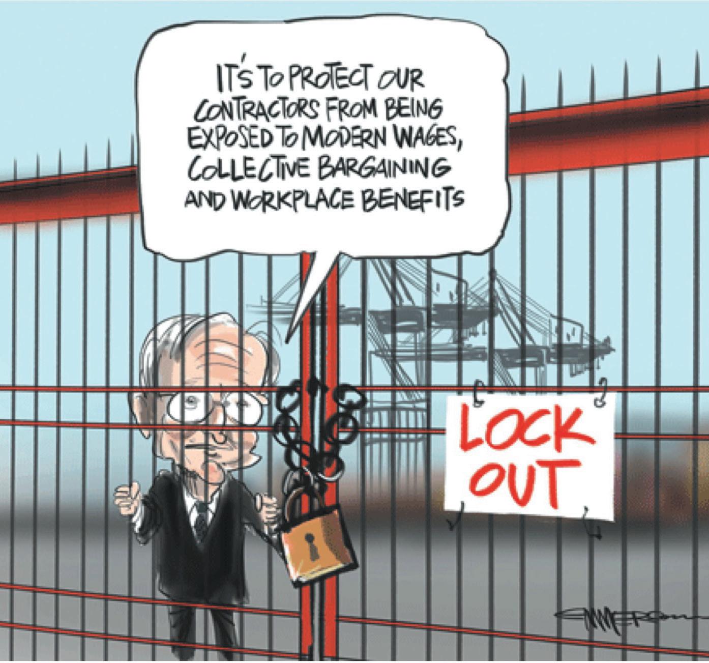 This move followed months of negoti ations, a lock out and strike actions as the Maritime Union mobilized to defend jobs and conditions. A co-ordinated campaign to undermine organized labour was underway, linking Government, port managers and bottom feeding right wing spin doctors.