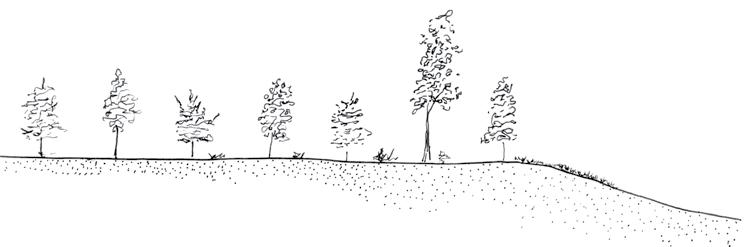Nestled in Wissahickon Park between a central thoroughfare and a trail, the Garden of Disrupted Expectations challenges preconceived notions of non-human nature by exposing underlying infrastructure and incorporating industrial materials. The proposed design also disrupts environmental processes by redirecting water flow and altering tree growth – taking cue from the existing site conditions. The contrast between dense planting at the edges and white-trunked birches at the center amplifies the experience of the sublime within the new landscape.