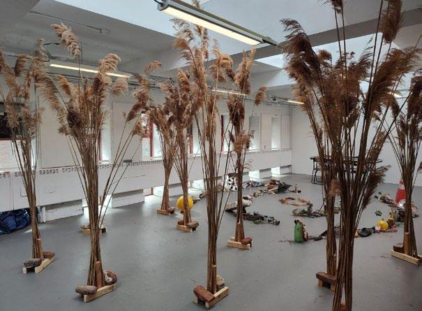 During the course of one week, we explored the Hackensack River and collected artifacts from its waters and shores. Then, without placing judgment on their value, we arranged the found objects for a workshop at the Jersey Art Book Fair. We invited visitors to enter this space of reflection and craft a tribute to the river. As they moved through the phragmites and engaged with these artifacts, we hoped they formed a deeper connection to the river through touch and creation. Finally, we asked participants to place their creation on the altar at the center of the room. Through the workshop, we created time to reflect on perceptions of the river and its materials.