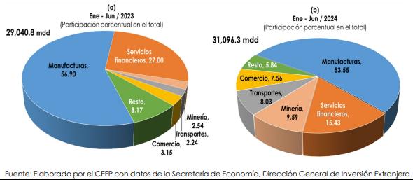 Distribución de la Inversión Extranjera Directa por Sectores, 2023 - 2024