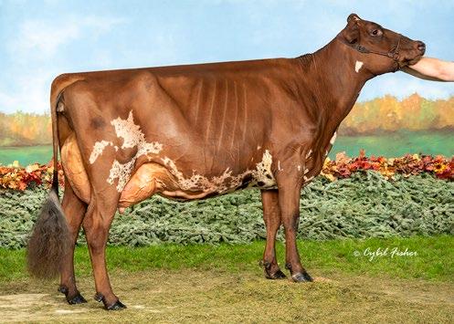 Rio x EX90 Sarge x EX90 OJ x VG89 Herman 5x All-American Honoree. Dam of Reagan Vivid EX93, Nom AA 5YO ‘23 & winning Aged cow at ESE & NSS ‘24.