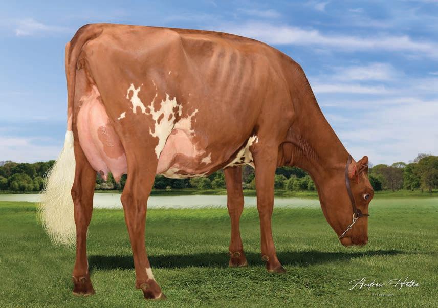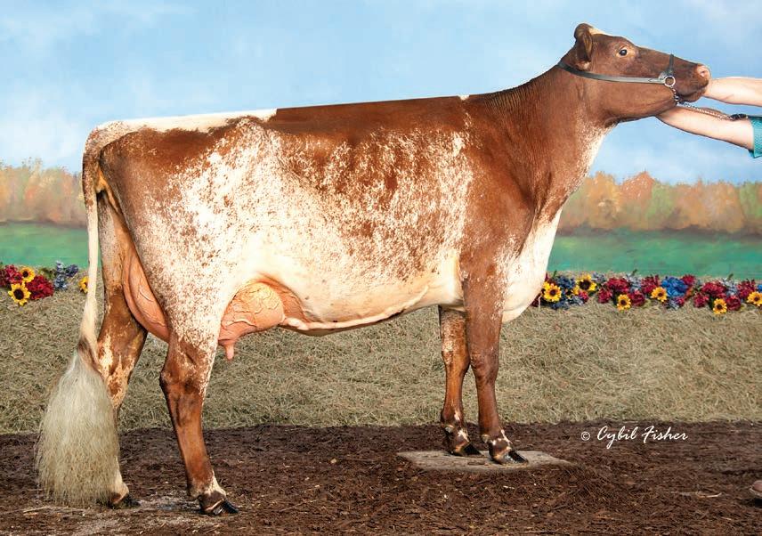 Dam: Gold Mine R St Brigham 348 EXP V89 89MS 5 Parent Average PTAT +0.3 Milk -93 Fat +11 Protein +3 PL -0.4 SCS +2.97