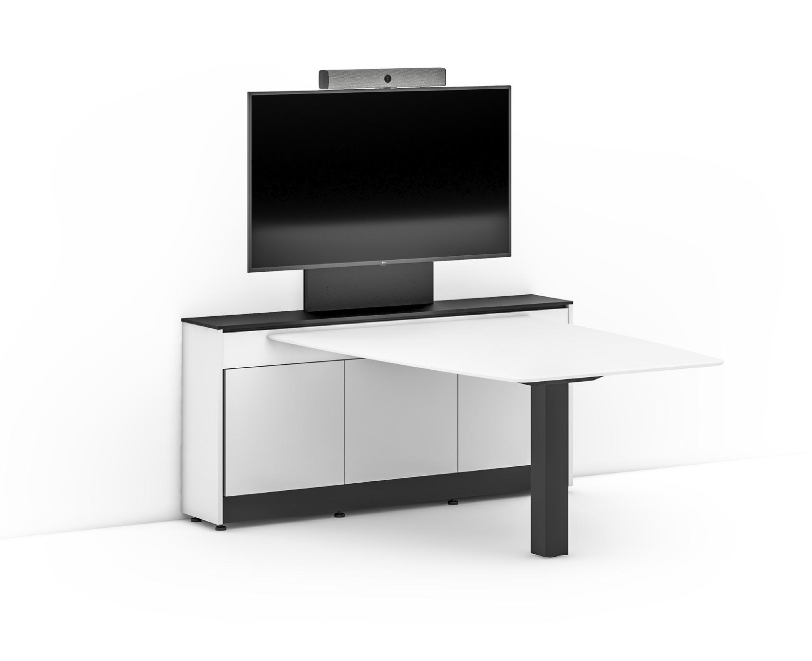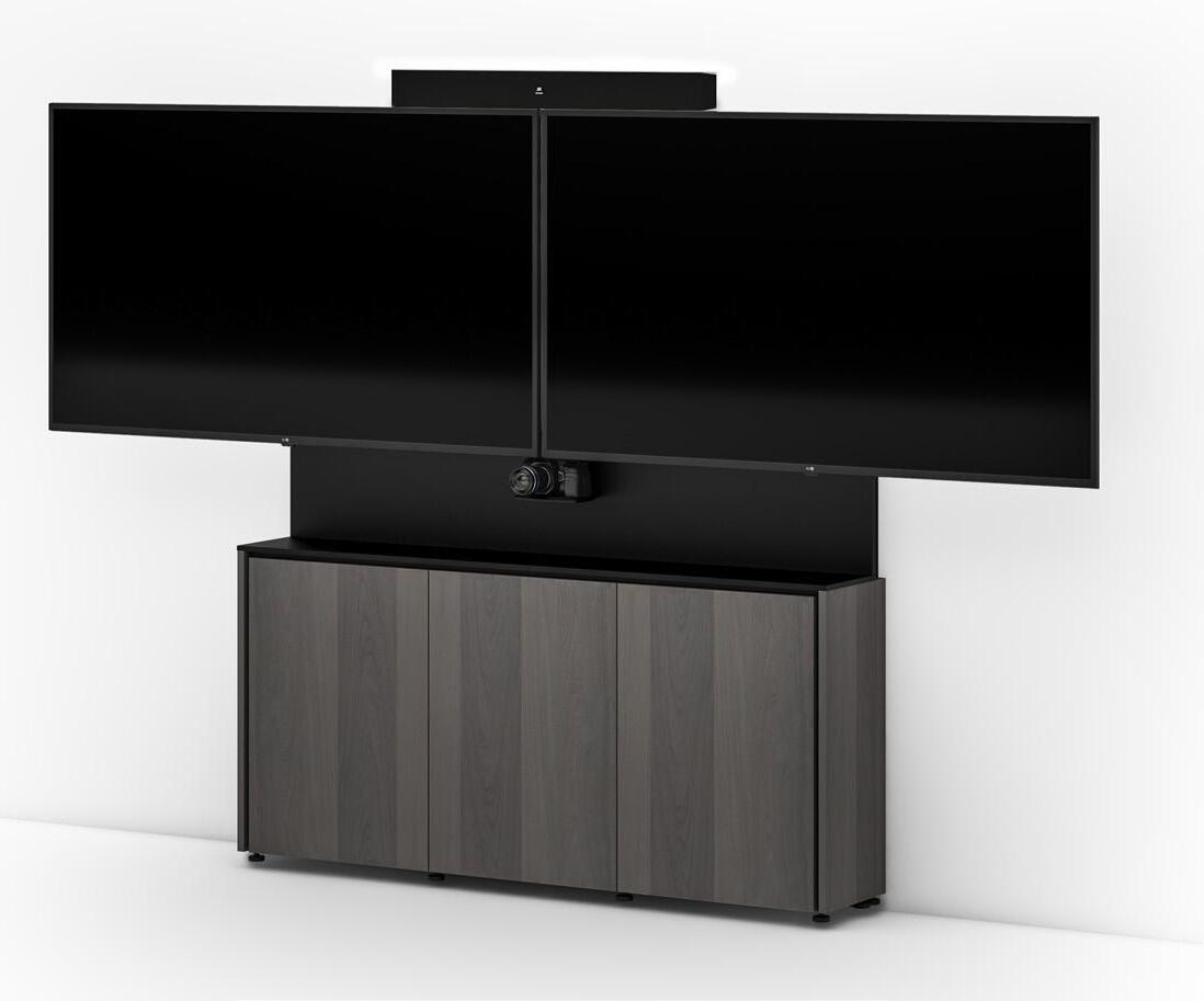 This furniture optimizes every display and camera position, sound systems and houses all components, to maximize technology and engagement. Tables come in many sizes, and the low-profile cabinet is ideal for rooms where space is at a premium.