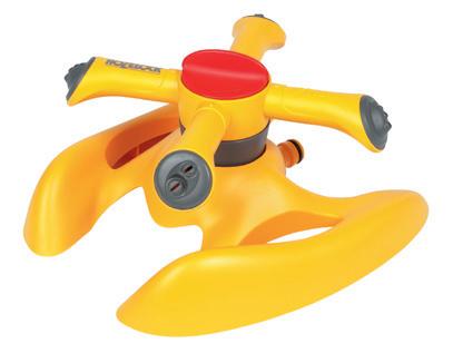 Arroseur rotatif à 4 bras avec jet de pulvérisation pour gazon et plantes établies, et pulvérisation en brouillard.