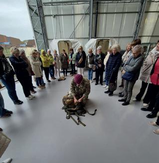 Het bezoek van Markant Beringen aan het opleidingscentrum van de para’s in Schaffen was een absolute topper. Ze kregen niet alleen uitleg over hoe een eerste sprong wordt voorbereid, maar ook over het drogen, vouwen en herstellen van de valschermen, het gebruik van de heliumballon en de verschillende soorten droppings. Achteraf was het heerlijk lunchen met de para’s, aldus Jeannine Boelanders.