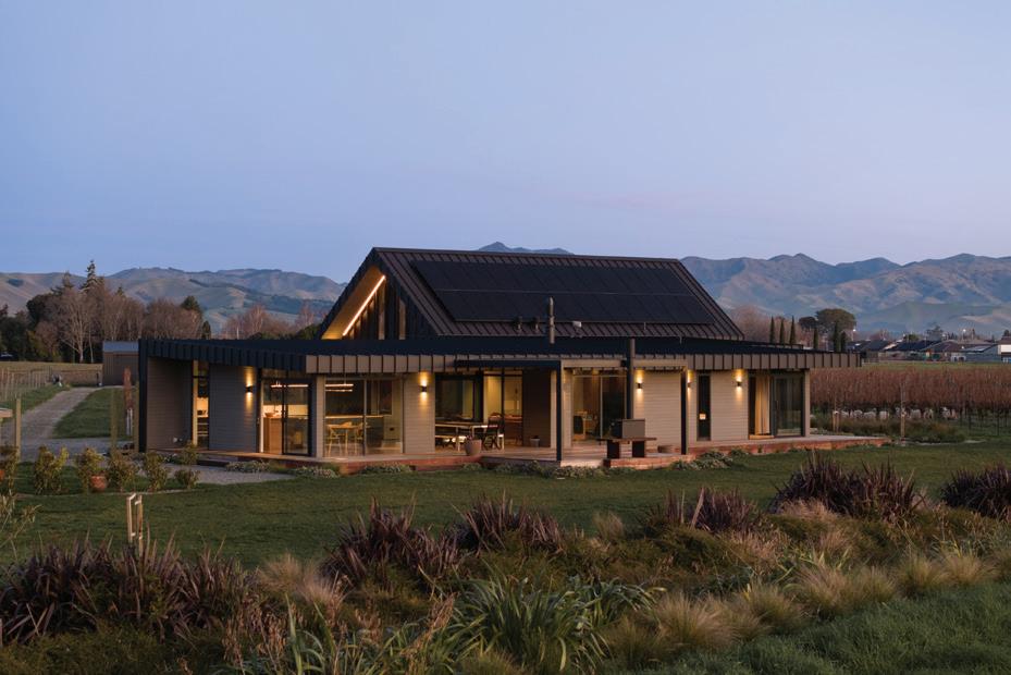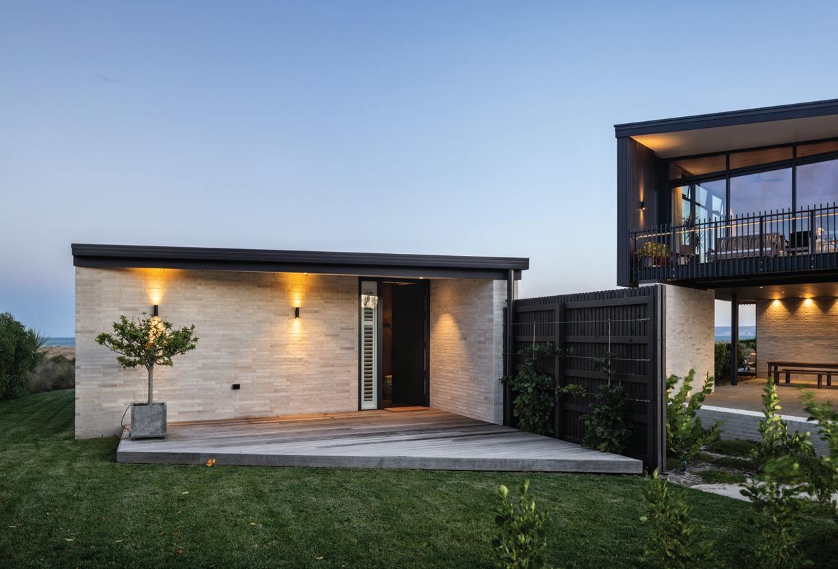 brick, standing-seam cladding, and timber joinery to break down its mass while aligning with sun and wind patterns for passive climate control. The project was recognised with the NZIA Nelson Marlborough Architecture Award in 2019.