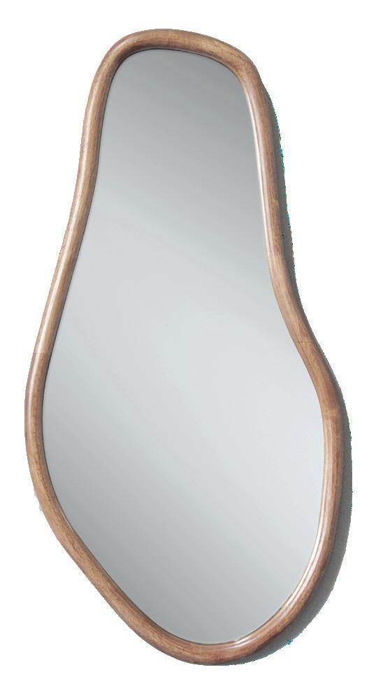 The Wooden Squiggle Mirror brings playful elegance to any space with its curvy rubber wood frame, making it a standout piece for your entry, living room, or bedroom, available in three versatile sizes.