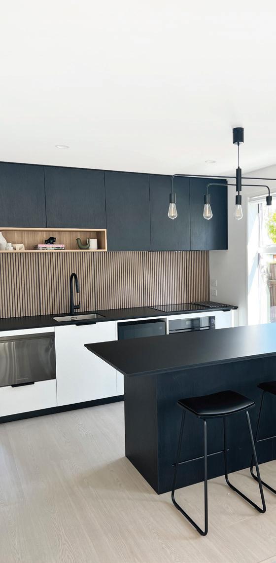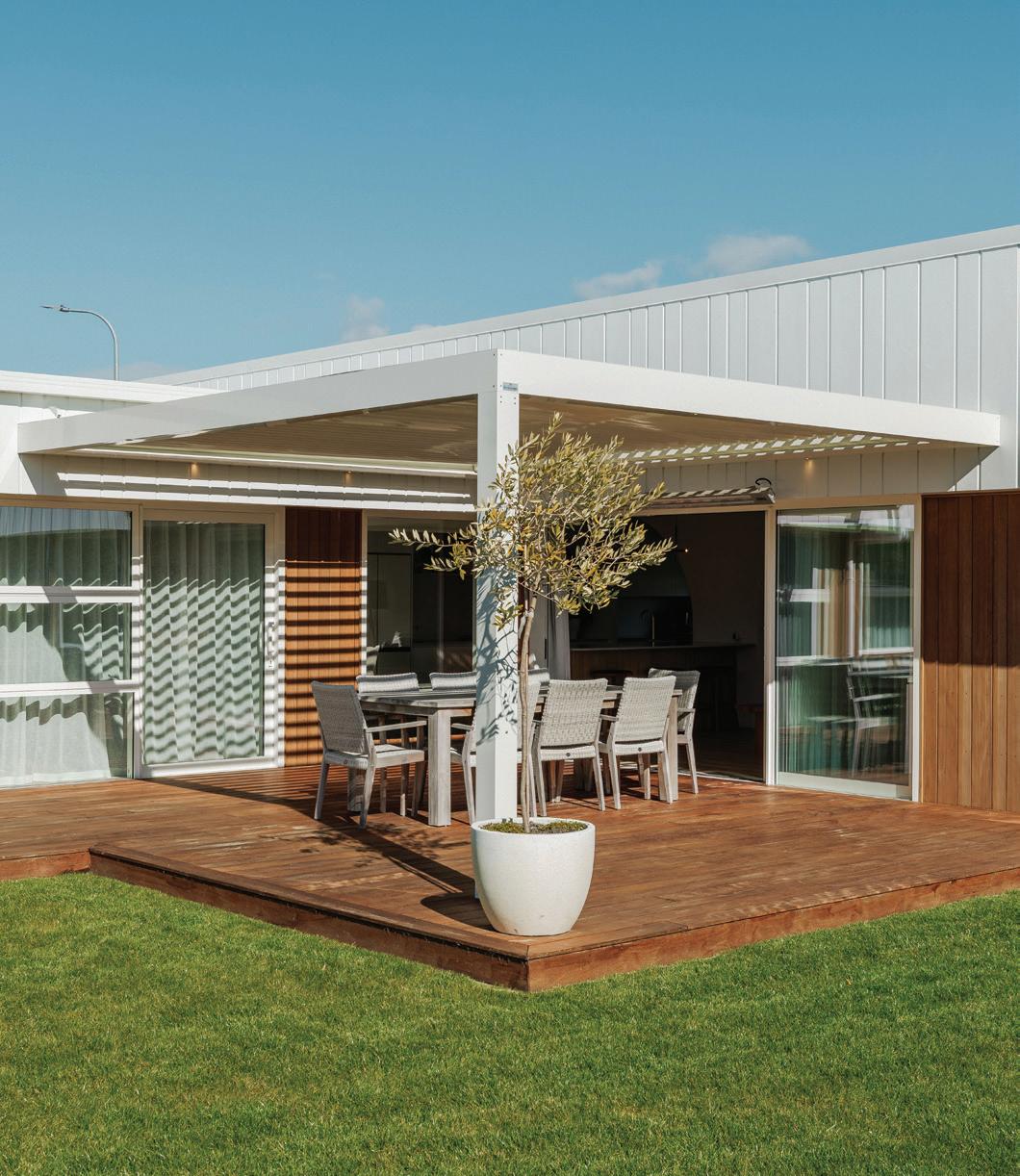 Though modest in footprint, the home feels generous thanks to its layered detailing and carefully considered features. The covered outdoor area, complete with a Stratco Lourve system and external blinds, creates what Brittany calls “an additional room where you can spill out from the main living area into”. Yet it is the roof which remains the defining feature. “Not only does it look great and make the otherwise compact space feel roomy, it also does the job with 800mm eave overhangs to protect the house thermally by restricting sunlight access during the hot summer months and allowing in the sun during the cold winter months,” Brittany reflects. www.staplearchitecture.co.nz