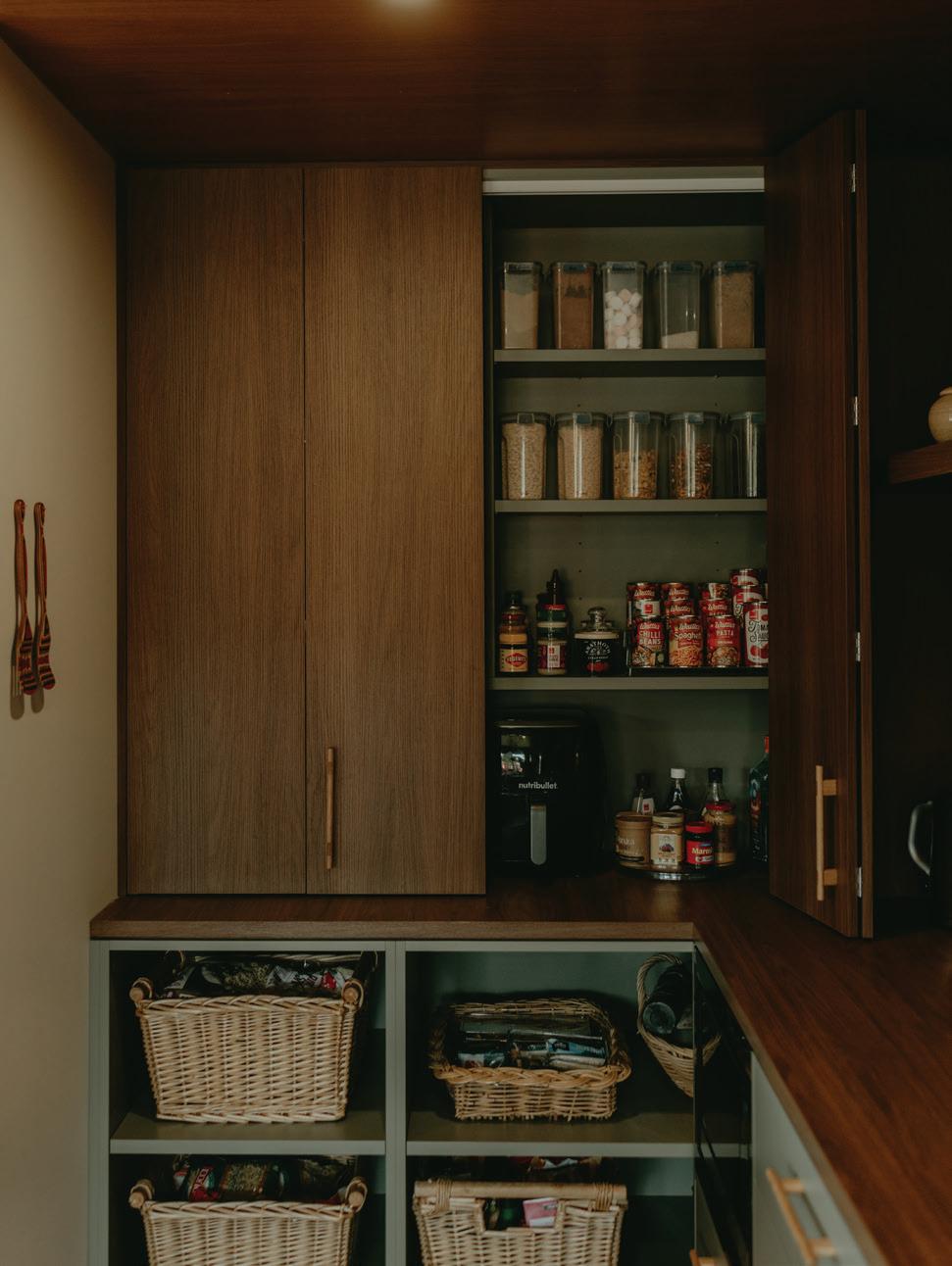 In the kitchen, refined detailing is at the centre, from a custom self-watering plant station to concealed lighting, all set beneath the home’s floating roof that defines this family collaboration.